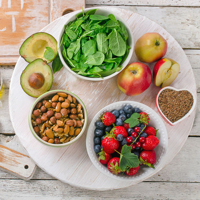 新鮮沙拉,多種堅果,美味酪梨,鮮甜蘋果、酸甜草莓以及藍莓。